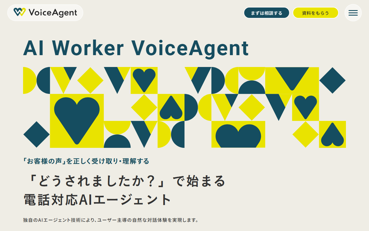 AI Messenger Voicebotは電話応対を自動化するAIエージェントです。用件特定エージェントが利用者の真の意図を理解し対話を進めます。従来型と比較して不要な会話のラリーを55%削減し、商品番号・人名・住所なども高精度に聞き取ります。 「AI Messenger Chatbot」はカスタマーサポート向けAIチャットボットで、独自の「AI Compass」により回答精度を向上させます。 AIエージェント構築プラットフォーム「AI Worker」の提供も開始し、業務自動化・DX推進を支援しています。