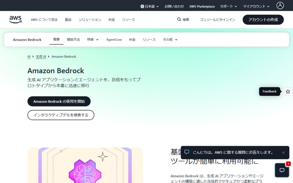 AWSが提供する「Amazon Bedrock」は、Claude・Llama・Nova・Mistral等の約100種類の基盤モデルを統一APIから利用できるフルマネージド型の生成AIプラットフォームです。エージェント機能やナレッジベース連携、インテリジェントプロンプトルーティングによ...