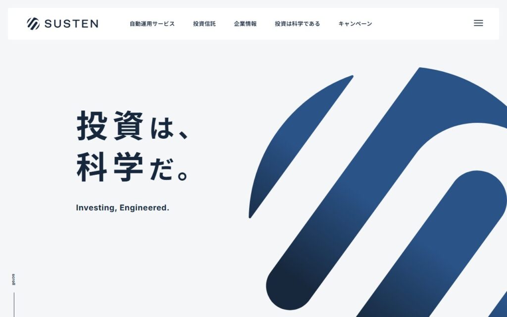 SUSTENは、AIを活用したロボアドバイザー型の資産運用サービスです。独自のAIアルゴリズムが市場環境を分析し、最適なポートフォリオを自動構築・リバランスします。 完全成果報酬型の料金体系を採用しており、運用益が出た場合のみ手数料が発生します。利... -