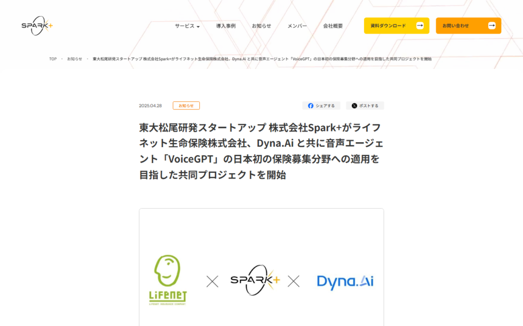 株式会社SparkPlusがDyna.Ai Technology Pte. Ltd.と共同開発した「VoiceGPT」は、コールセンター業務に特化した日本語対応の音声対話AIエージェントです。独自の音声認識・音声合成技術により200ミリ秒以内の応答を実現し、スクリプトに依存しない自然な... -
