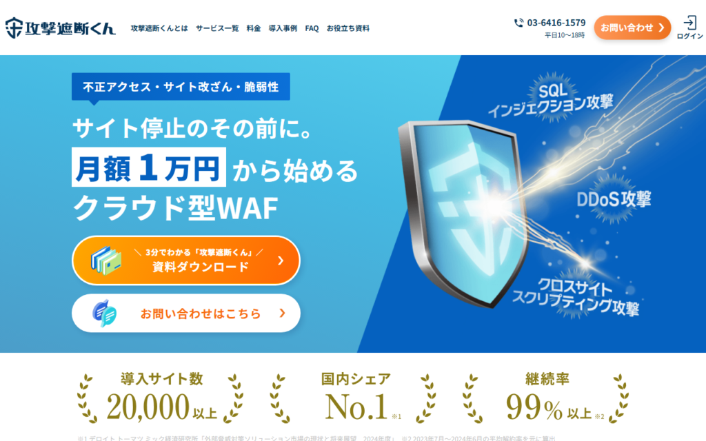 攻撃遮断くんは、外部からのサイバー攻撃を検知・遮断し、Webサーバ・Webサイトを守るクラウド型WAFサービスです。ディープラーニングを用いた攻撃検知AIエンジン「Cyneural」により、既知・未知の攻撃パターンを高速に検出します。 導入は最短1日で、現有... -