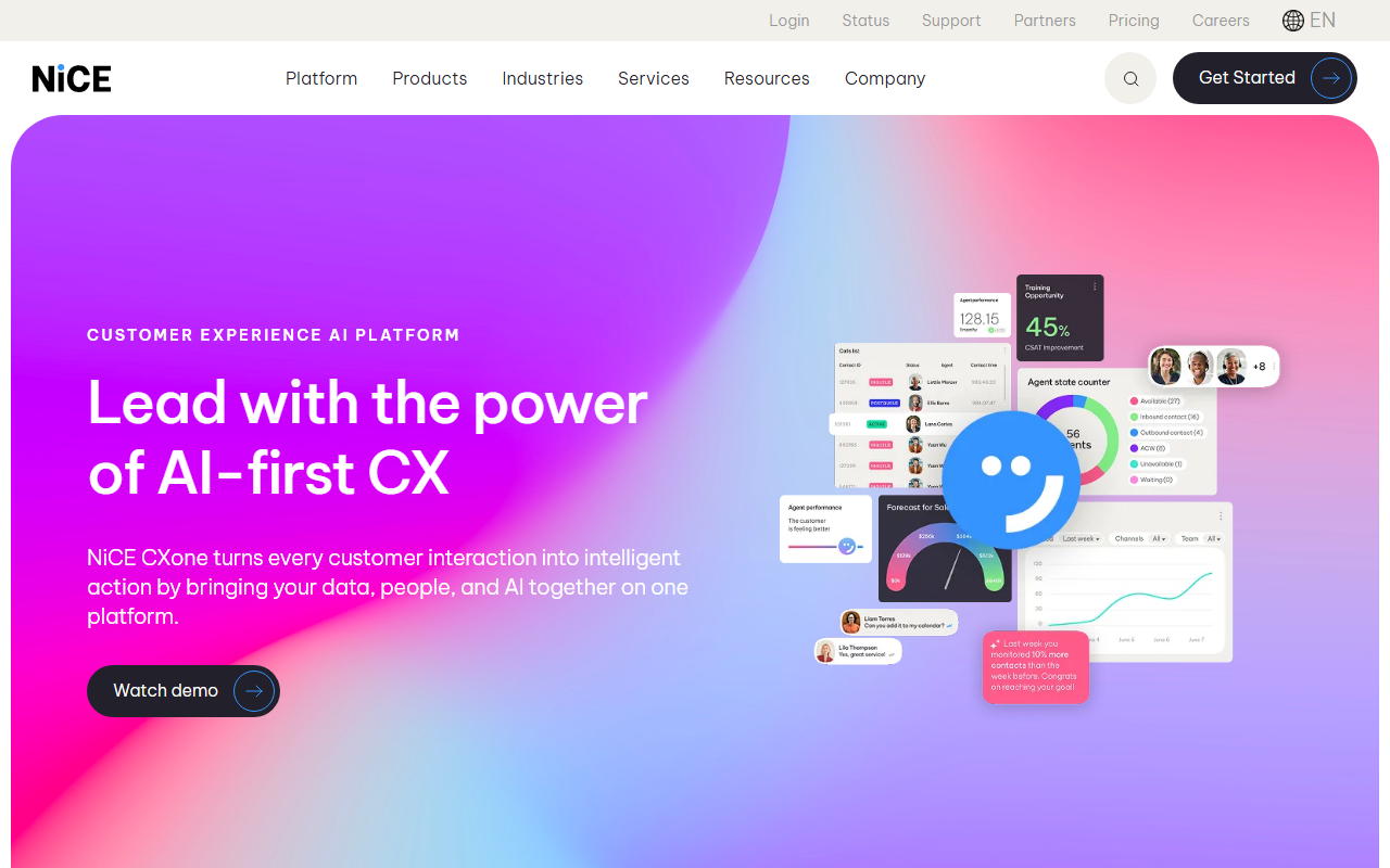 NICEが提供する「CXone」は、エンタープライズ向けAI搭載カスタマーエクスペリエンスプラットフォームです。AIエージェントによる自動応答、オムニチャネルルーティング、ワークフォース管理、品質管理を一体化したクラウドネイティブのコンタクトセンターソリューションです。年間200億件以上のインタラクションデータで訓練された専用AIモデルを活用し、顧客意図・感情・アウトカムを高精度に分析します。GartnerのCCaaSマジッククアドラントで11年連続トップ評価、世界150カ国以上・25,000社超に導入されています。
