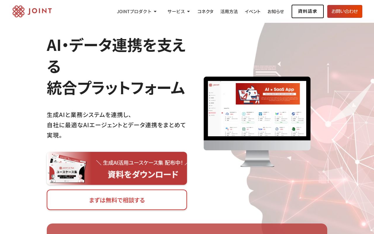 企業概要SaaS連携プラットフォーム「JOINT iPaaS」と生成AI活用基盤「JOINT AI Flow」を提供するDX推進企業。
