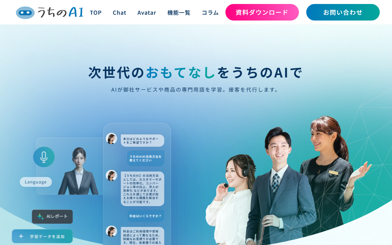 企業概要ChatGPT搭載AIアバターチャットボット「うちのAI」シリーズを展開するAI SaaS開発企業。