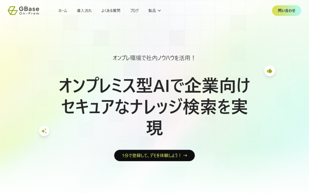 GBase On-Premは、Sparticle株式会社が提供するオンプレミス型の企業向けAI知識管理・検索ソリューションです。独自開発の大規模言語モデル「Sparticle-GBase-JP-80B」を搭載した高精度RAG検索を実現します。PDF・Word・Excel・PowerPoint・テキスト・画像... -