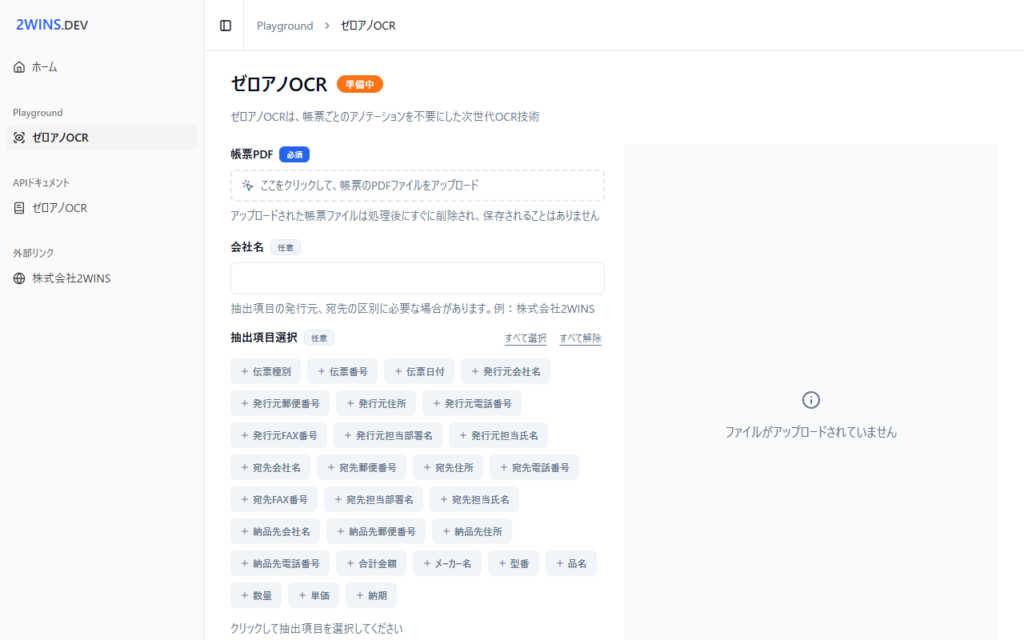 ゼロアノOCRは、株式会社2WINSが提供する次世代OCRサービスです。従来のOCRで必要だった帳票ごとのアノテーション作業を不要にした点が最大の特徴で、事前学習なしに多様な帳票フォーマットに対応します。請求書・注文書・納品書などの帳票PDFをアップロー...