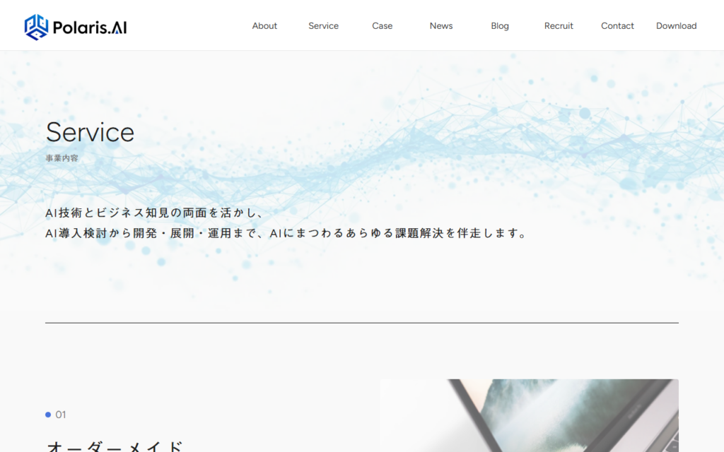 Polaris.AI株式会社が提供するAI受託開発・コンサルティングサービスです。東京大学松尾研発のスタートアップとして、最先端のAI研究者と外資系コンサル出身者がチームを組み、企業の課題特定からカスタムAIソリューションの開発・導入までを一貫して支援... -