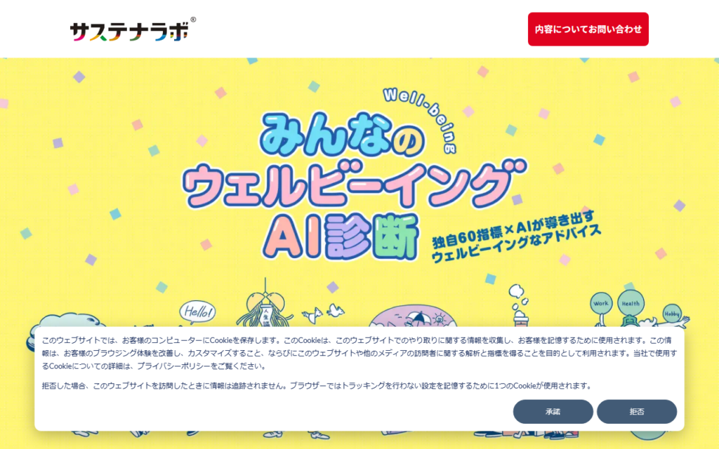 株式会社朝日広告社が開発した、生活者の幸福度を可視化し個別アドバイスを提供するAI診断サービスです。独自開発の「60のウェルビーイング指標™」を活用し、「心身充実度」「自己実現度」「仕事満足度」「金銭余裕度」「成長意欲度」「居住利便度」など11... -