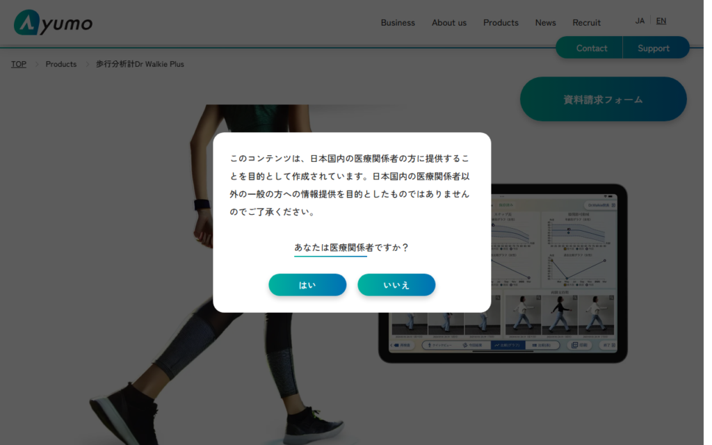 Dr Walkie Plusは、整形外科医が開発したAI歩行分析計です。検査着への着替えやセンサー・マーカーの装着は不要で、普段着のままカメラの前を歩くだけで非侵襲・非接触の歩行分析を実施できます。独自の深層学習モデルにより、歩行特徴を抽出して運動機能... -
