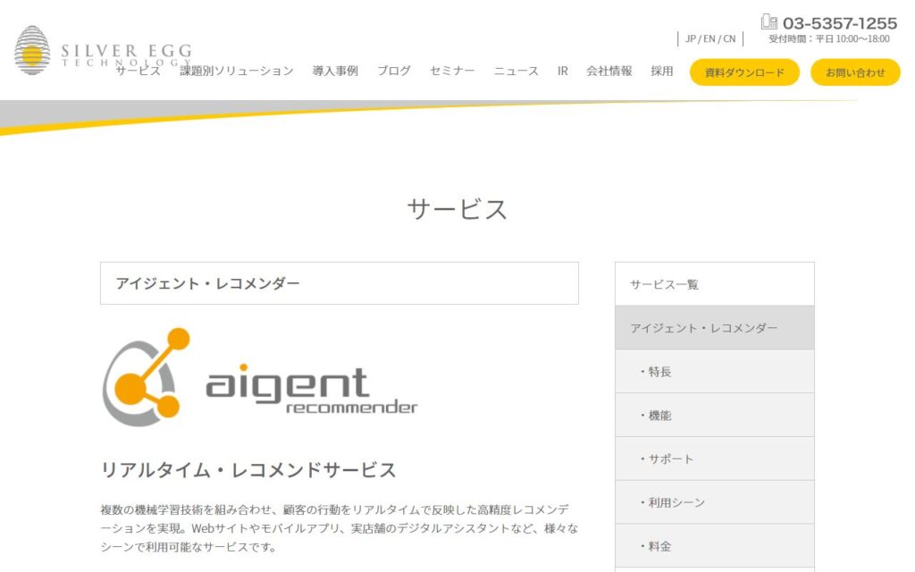 アイジェント・レコメンダーは、シルバーエッグ・テクノロジーが提供するリアルタイム・レコメンドサービスです。複数の機械学習技術を組み合わせ、顧客の行動をリアルタイムで解析します。ユーザーの閲覧経路に基づいたパスディペンデンシー機能により、...