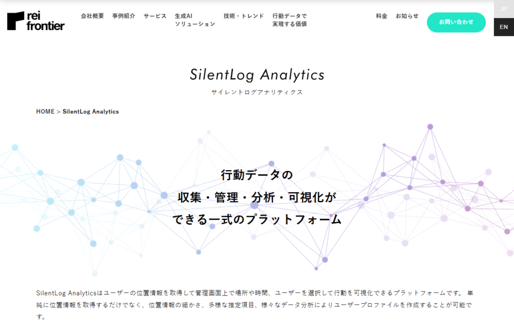 SilentLog Analyticsは、AIを活用した位置情報分析プラットフォームです。独自開発のSDKにより、バッテリー消費を1日平均3%に抑えながら数秒単位での高密度な位置情報を取得し、ユーザーの行動を可視化・分析できます。 移動手段や行動目的をAIが自動推定... -