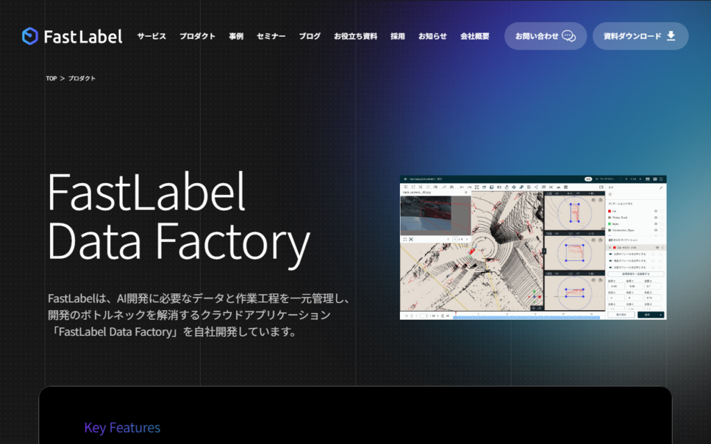 FastLabel Data Factoryは、AI開発に必要なデータと作業工程を一元管理し、開発のボトルネックを解消するクラウドアプリケーションです。画像(物体検出・分類・矩形・領域分割)、動画(物体検出・トラッキング・分類)、音声(会議音声・感情音声・会話... -