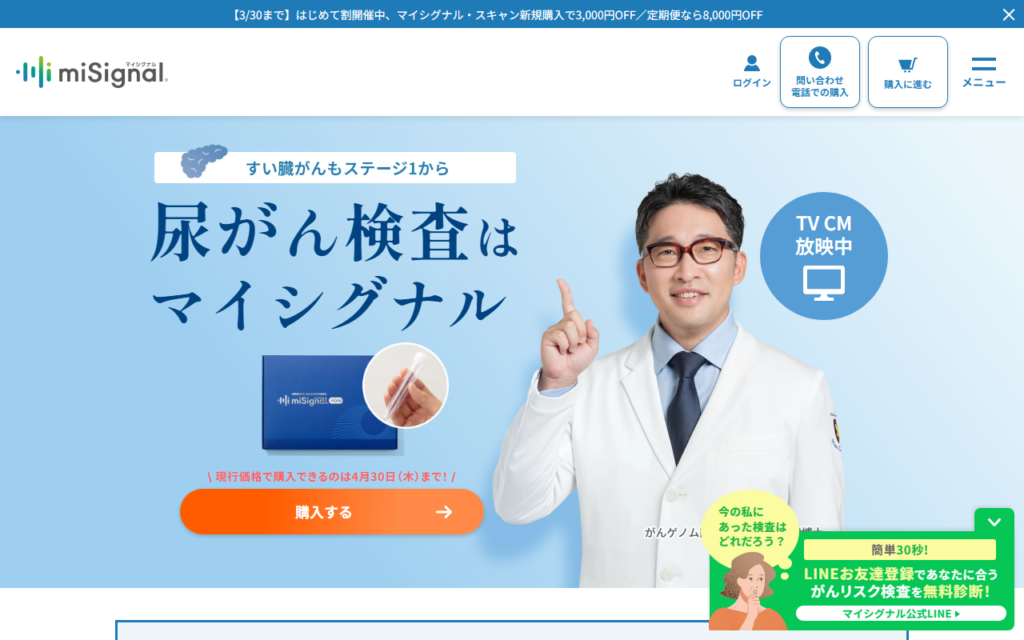 マイシグナルは、尿検体からマイクロRNAをAI解析し、がんリスクを評価する検査サービスです。独自のナノワイヤー技術で尿中の微量なマイクロRNAを高感度に捕捉し、AIが複数がん種のリスクを同時に判定します。 自宅で採尿するだけで検査が完了するため、従... -