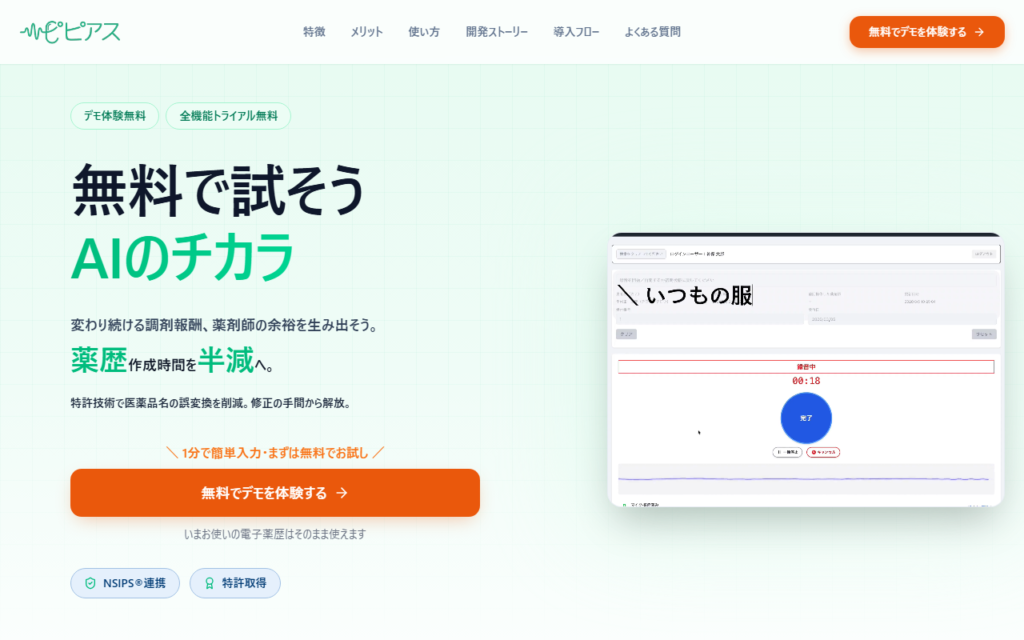 株式会社ロジロジが提供する「PIAS」は、AI薬歴支援システムです。「薬剤師を薬歴作成から解放する」をコンセプトに、AIが服薬指導の内容をリアルタイムに解析し、薬歴の下書きを自動生成します。薬剤師は生成された下書きを確認・修正するだけで薬歴が完... -