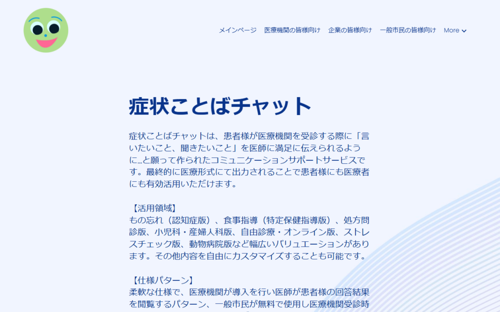 SHANRI株式会社が提供する、患者と医師のコミュニケーションを支援する医療特化型チャットサービスです。患者がスマートフォンからチャット形式で症状を入力すると、内容が医療形式に自動変換され、医師への伝達をスムーズにします。音声入力や写真・イラ... -