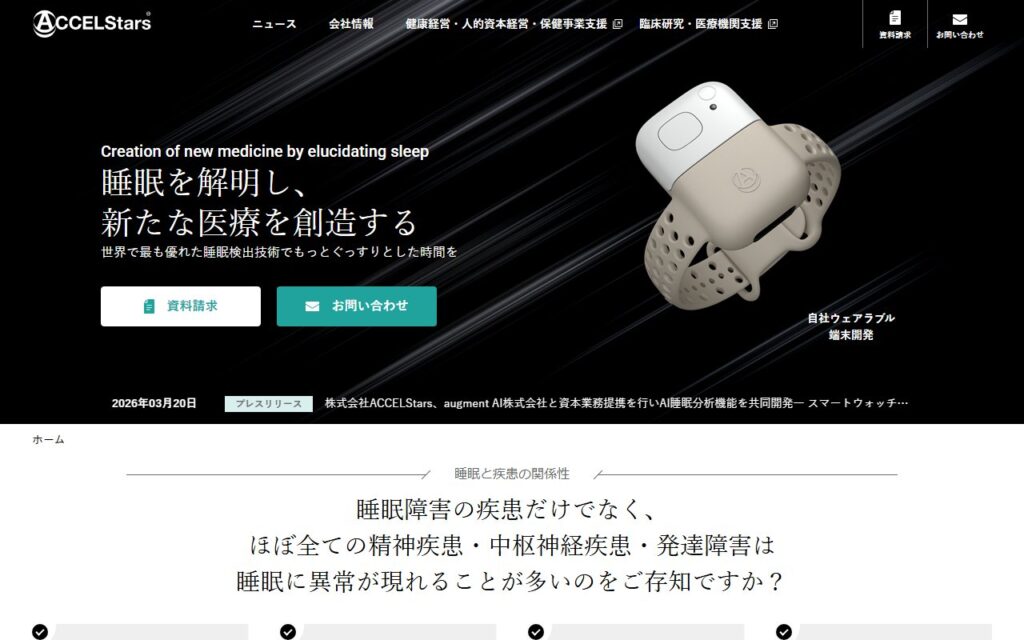 ASAP(ACCELStars Analysis Platform)は、東京大学医学系研究科の上田泰己教授が開発した世界最高精度の睡眠解析アルゴリズム「ACCEL」を基盤とした睡眠解析AIクラウドです。腕時計型ウェアラブルデバイス「ACCEL ATRIA」と連携して睡眠データを収集・解... -