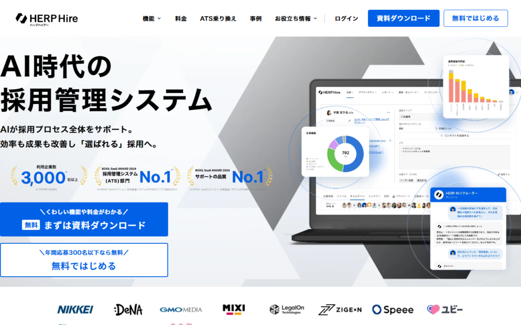 HERP AI Recruiterは、採用管理システム「HERP Hire」と連携し、AIが採用プロセス全体を支援するサービスです。書類選考の効率化、面接の自動書き起こしや議事録生成、AIチャットによる面接設計の支援、オファーレターの作成サポートなど、採用活動の各フ...