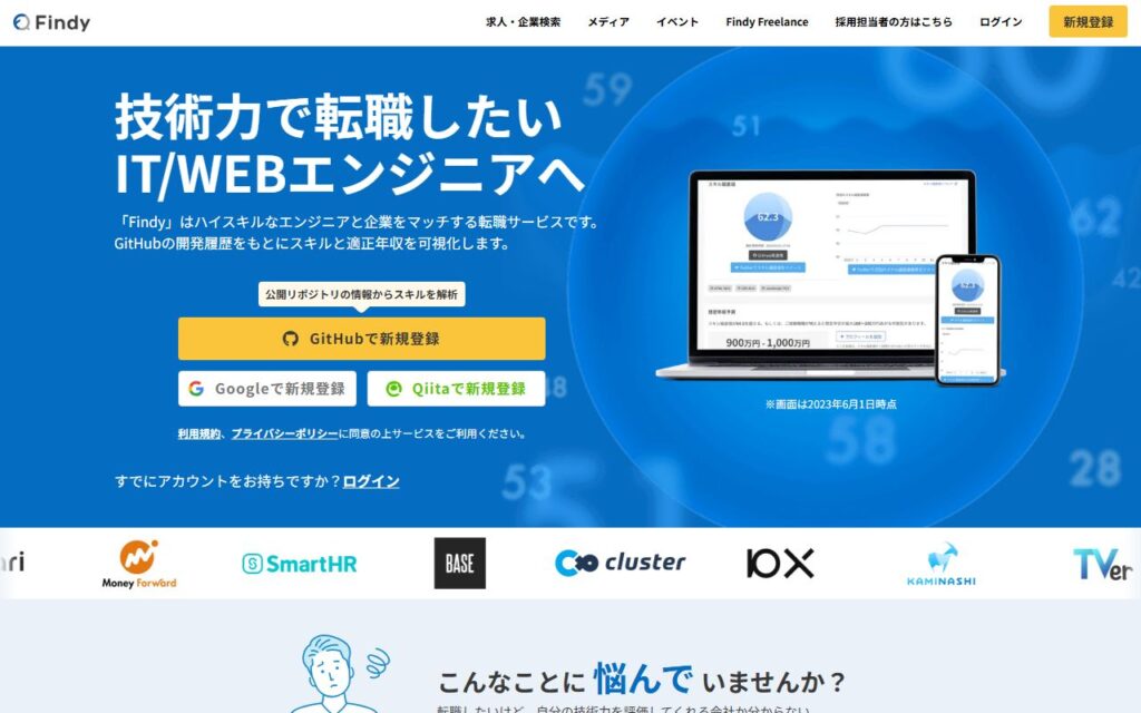 ファインディ株式会社が提供する「Findy」は、AIを活用したハイスキルエンジニア向け転職サービスです。GitHub連携によりエンジニアのスキルを偏差値化し、開発言語ごとの技術力と想定年収を可視化します。独自開発AIがエンジニアのスキルと企業の求人票を... -