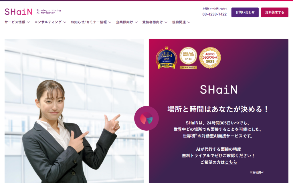 株式会社タレントアンドアセスメントが提供する「SHaiN」は、AIを活用したオンライン面接サービスです。スマートフォン・タブレットから24時間365日どこでも受検でき、採用担当者の工数を増やさずに全国規模の候補者へ対応できます。独自の「戦略採用メソ... -