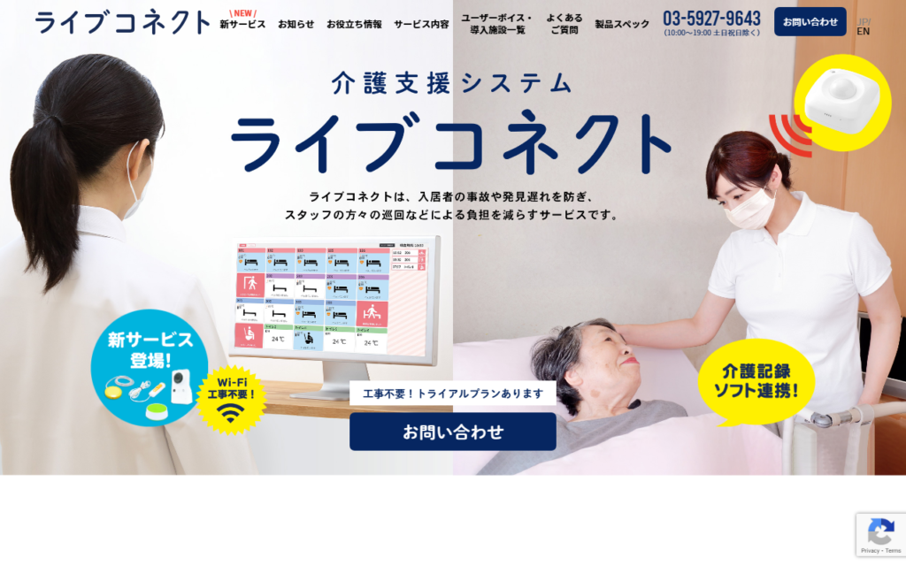 ライブコネクトは、高齢者介護施設の居室状況を見える化する介護支援システムです。複数のセンサーにより「睡眠状態」「心拍」「呼吸」「離床」「トイレ回数」を検知し、利用者の状態や行動を可視化して24時間見守りを実現します。 4G回線やSIMカード内蔵... -
