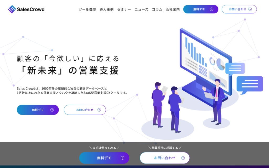 Sales Crowdは、MA・SFA・CRMをオールインワンで搭載したSaaS型営業DX支援ツールです。AIが抽出した最適なアプローチリストを元にテストマーケティングを実施し、企業ごとの営業必勝パターンを発見します。架電から分析まで営業活動を一元管理できます。 A... -